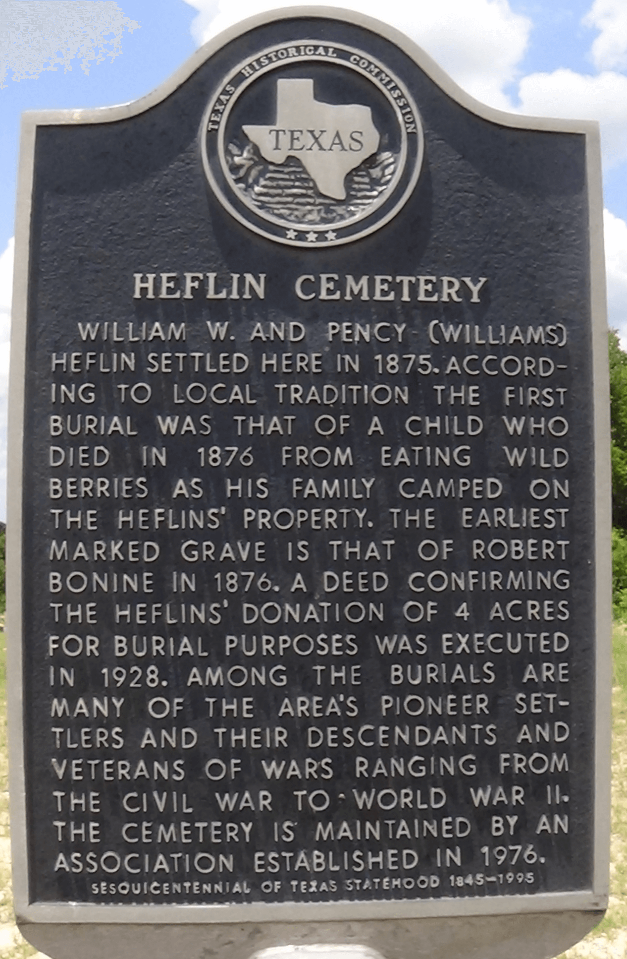 — Heflin Cemetery Texas Historical Commission Marker